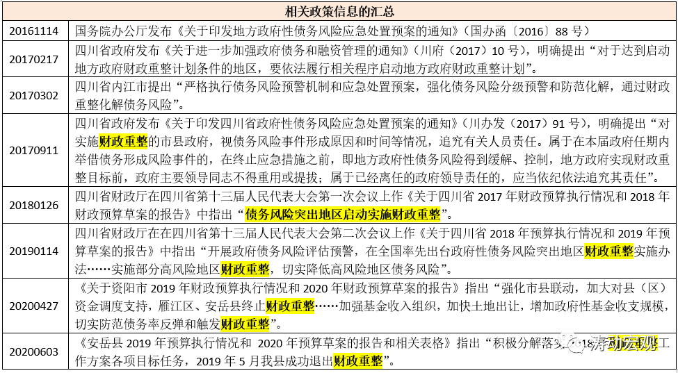 二、四川資陽市的雁江區(qū)和安岳縣已于2018年率先實施了財政重整計劃