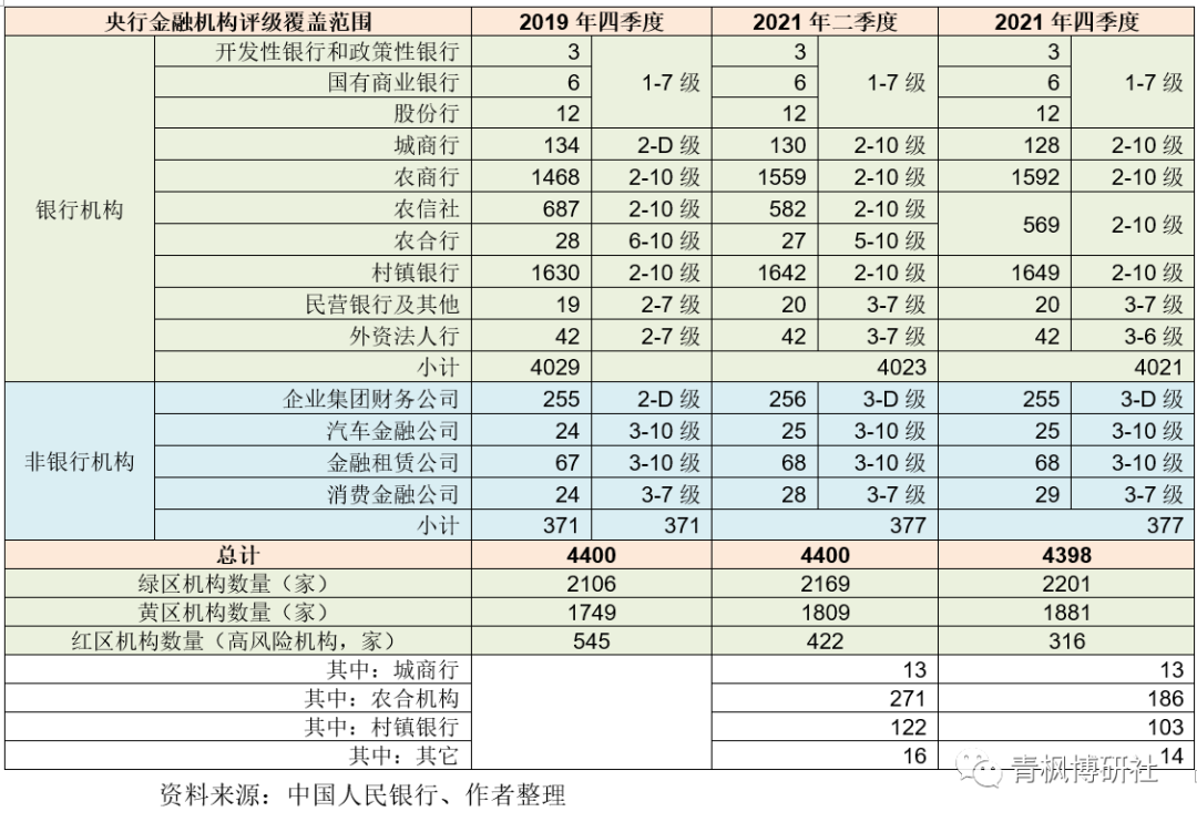 (二)此次評級覆蓋了4398家銀行業金融機構(具體包括24家大型銀行、3997家中小銀行以及377家非銀行機構)。
