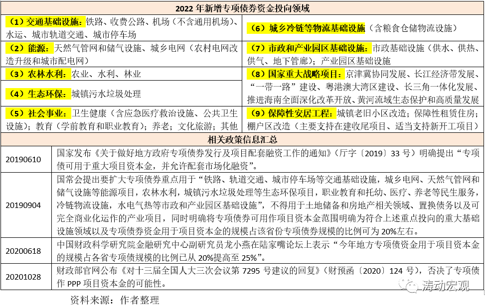 (三)新增專項債聚焦9大領域,且可用作10個領域重大項目的資本金