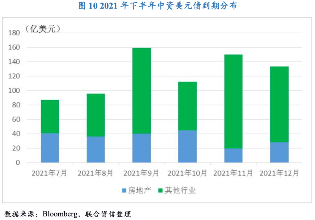 2021年下半年中資美元債到期壓力較大,尤其房地產企業,在“三道紅線”壓力下房企面臨的違約風險仍然較高