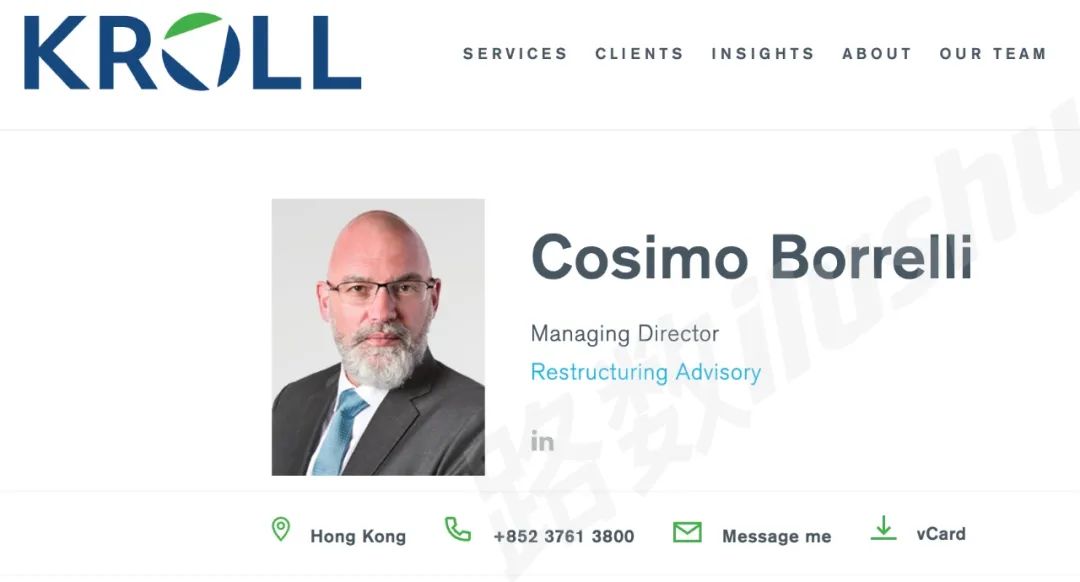 這位澳大利亞人原為一家名為Borrelli Walsh公司的成員之一。2020年,擅長財務與運營重組的Borrelli Walsh被Kroll收購。Cosimo Borrelli負責Kroll在亞洲和加勒比地區的重組業務。