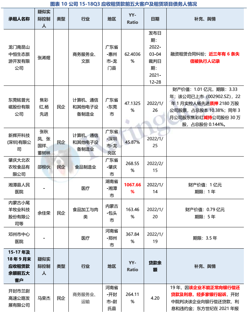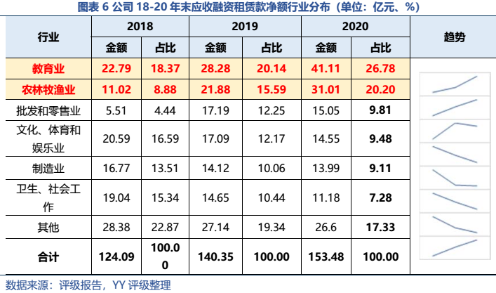公司的主營業務為金融租賃,定位于服務三農、教育業(包括生豬行業、蛋雞行業以及K12 民辦教育市場)。近年來公司資本充足率呈穩步上升態勢,但考量到公司信息披露較滯后,且受教育新規出臺和豬周期影響較大,上述板塊資產質量有所承壓。進一步對底層債務人進行穿透,公司所投項目多集中在民企,且部份民企已被納入被執行人,或是股票已被質押。因此,從目前已有的信息可以推測公司當前資產質量有所承壓。