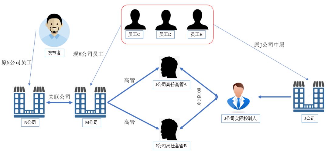可以看出,負面消息的發布者雖然表面與J公司并無關系,但深度調查之后,其關聯性變得一目了然,背后推手為原J公司高管A和B。