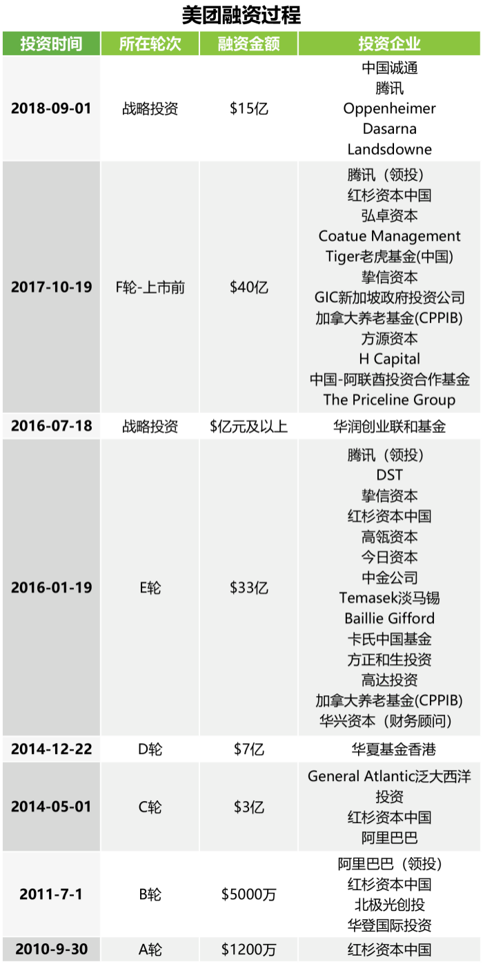 (美團上市之前的融資整理,來自艾瑞網)
