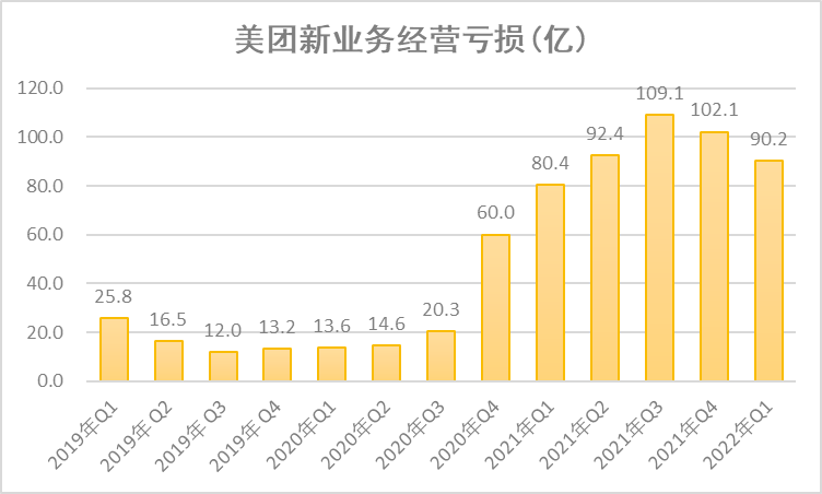 而美團為此付出的代價則顯而易見。2021年,該三項業務便給美團帶來了高達384億元的虧損。受此拖累,新業務虧損一路走高,至2021年Q3和2021年Q4,美團新業務虧損金額則分別達到驚人的109億元和102億元。