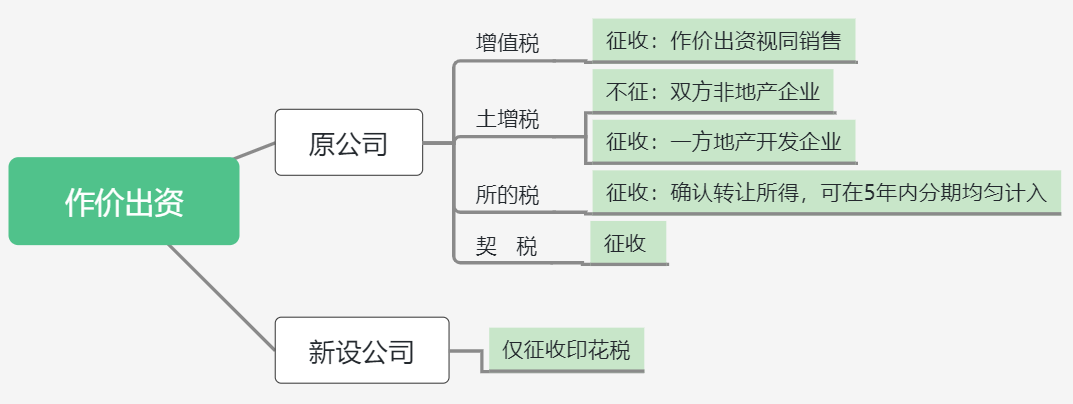 相較于資產轉讓,作價出資有兩點優勢:一是,在部分要求較為寬容的城市作價出資不受25%的投資額限制;二是,作價出資在“所得稅、土增稅”上存在籌劃空間,尤其所得額可在5年內分期計入,對于降低現金流峰值好處很大。