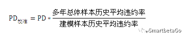 由于建模樣本和總樣本的平均違約概率并不一致,需要集中趨勢校準