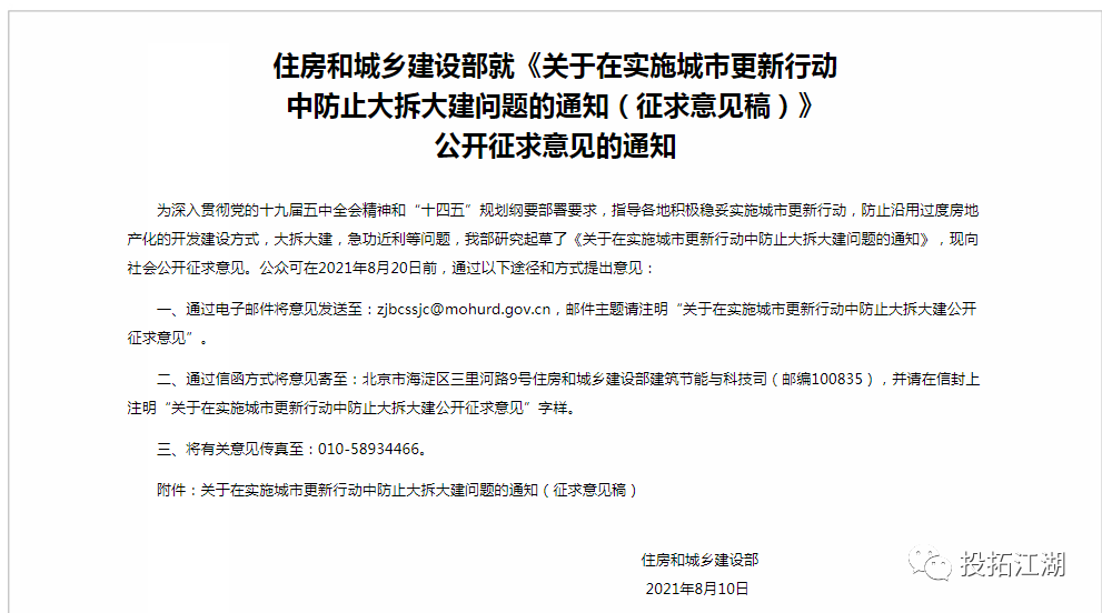 昨天的時候,大家的朋友圈想必都被一個重磅的事件刷屏了,那就是住建部的一個新征求意見稿,關于征求城市更新里面防止大拆大建的文件。