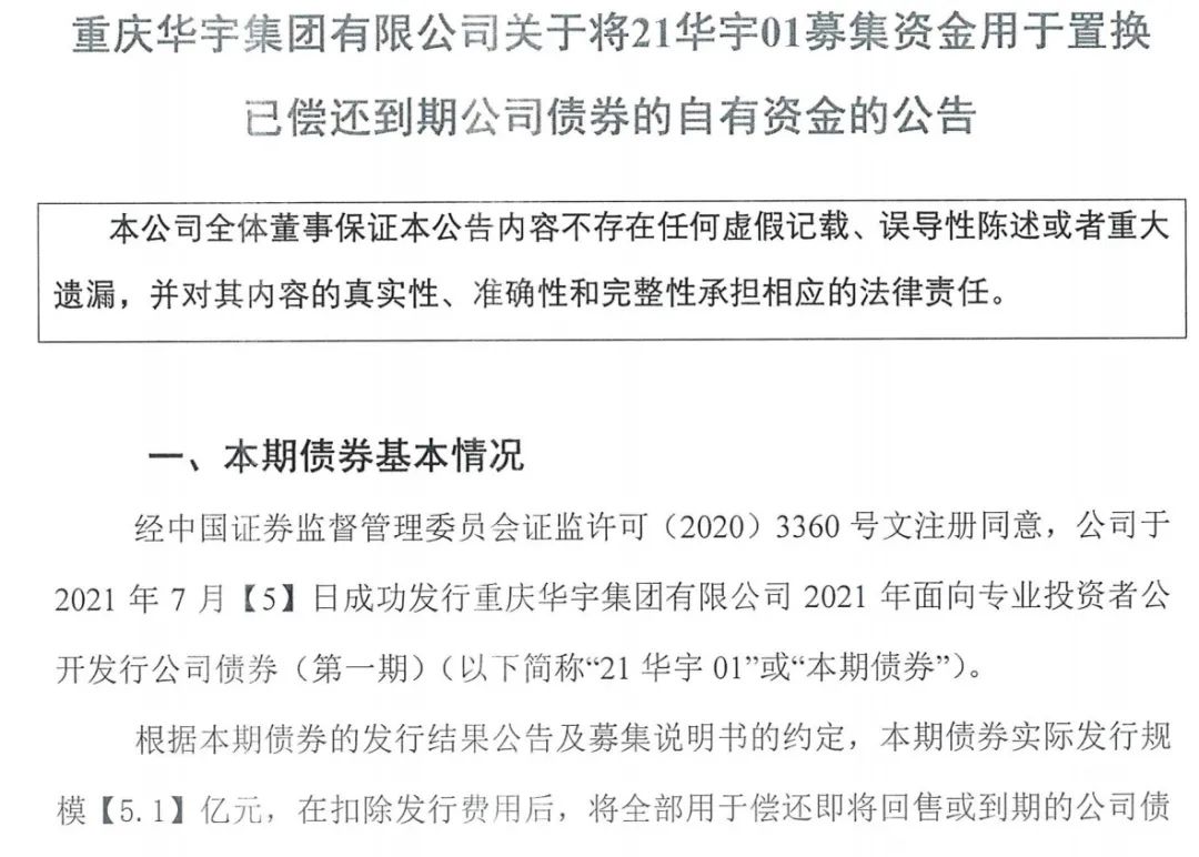 7月9日,華宇集團2021 年面向?qū)I(yè)投資者公開發(fā)行的公司債券(第一期)于在上交所上市。