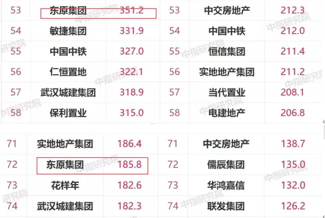 從中指院統(tǒng)計的銷售榜單里杠桿地產(chǎn)看到,和2019上半年比,東原掉出前50,滑落至53位,權(quán)益銷售額排名第72位。