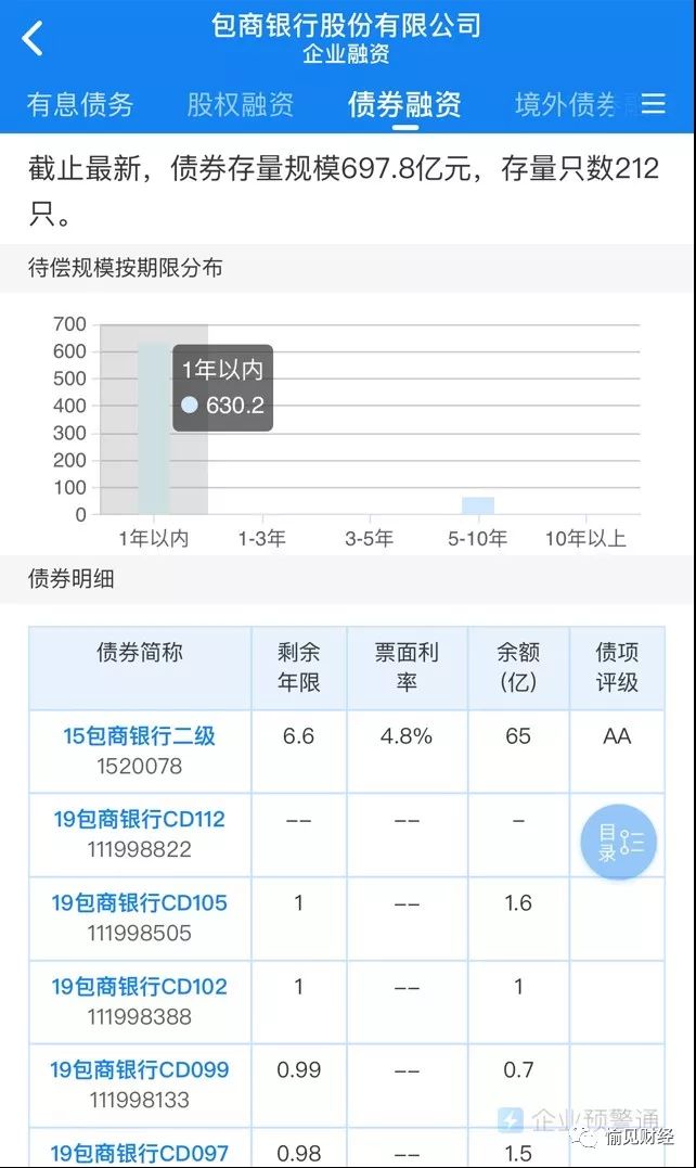 2015年12月25日,包商銀行在全國銀行間債券市場成功發行65億元二級資本債券,票面競標利率4.80%。債券為5+5年期固定利率債券,目前尚未到期。