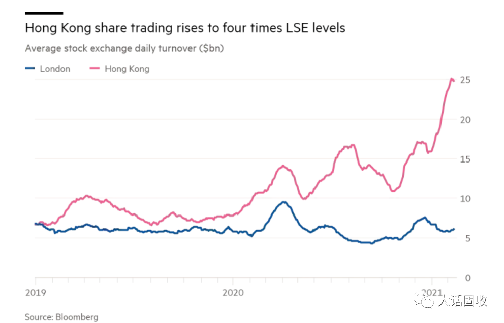 上午刷到一條新聞,據根據彭博(Bloomberg)數據進行的計算顯示,在截至2月16日的30天里,香港證交所的日均成交額躍升至約250億美元,而去年同期約為100億美元。