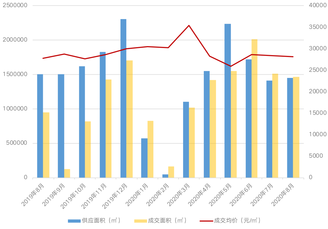 從新建商品住宅表現來看,成交面積僅在2月份同比減少61.68%之后,至3月迅速恢復,成交面積同比增長7.72%,前5月杭州就出現4個“萬人搖”項目,成交量在6月達到高峰,當月成交面積達到202萬平方米,同比增長64.86%,創近三年來新高。