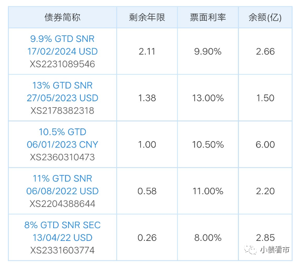 存續(xù)美元債情況