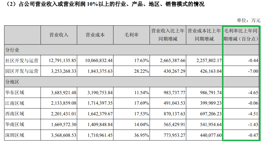 特別華東和西南區(qū)域,毛利率下滑超4個(gè)點(diǎn)。