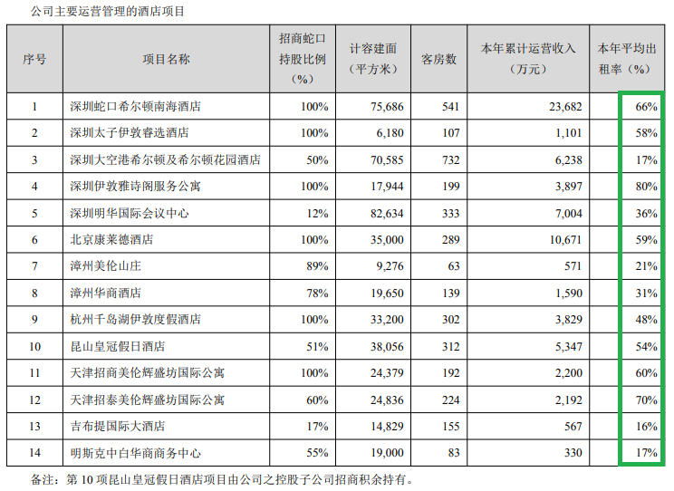 同樣,通過年報(bào),杠桿地產(chǎn)看到,招商蛇口旗下的酒店?duì)I收和年均出租率就更差。