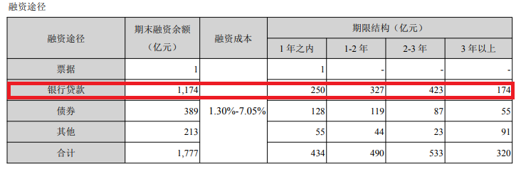 招商蛇口主要融資中,銀行是絕對大頭,這保證了較低的平均利率和可以使用的周期較長。