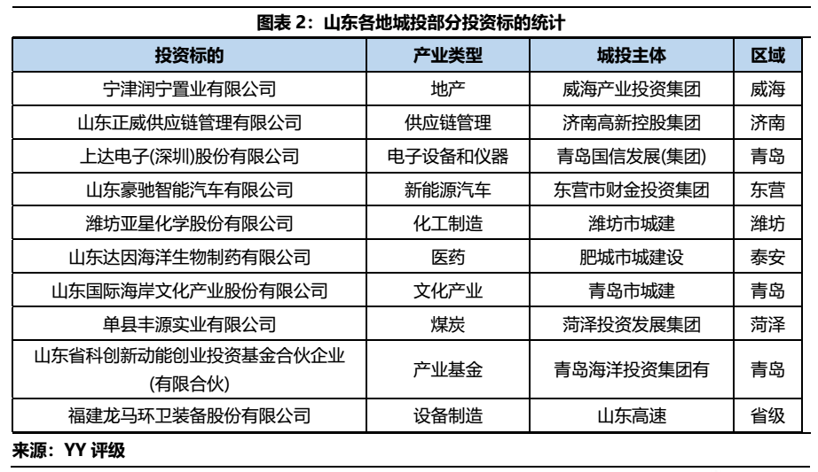 產業(yè)投資于城投而言在一定程度上體現(xiàn)了風險加成,就山東而言,資源稟賦的不同也代表著產業(yè)化的方式以及投資標的的差異。資本較為充足的地區(qū)例如青島、濟南等地可通過收并購方式引入外省企業(yè),下沉地區(qū)聚焦省內,助力地方龍頭企業(yè)的運營,但最終城投能否降低債務壓力、實現(xiàn)穩(wěn)定盈利仍需要時間的檢驗。