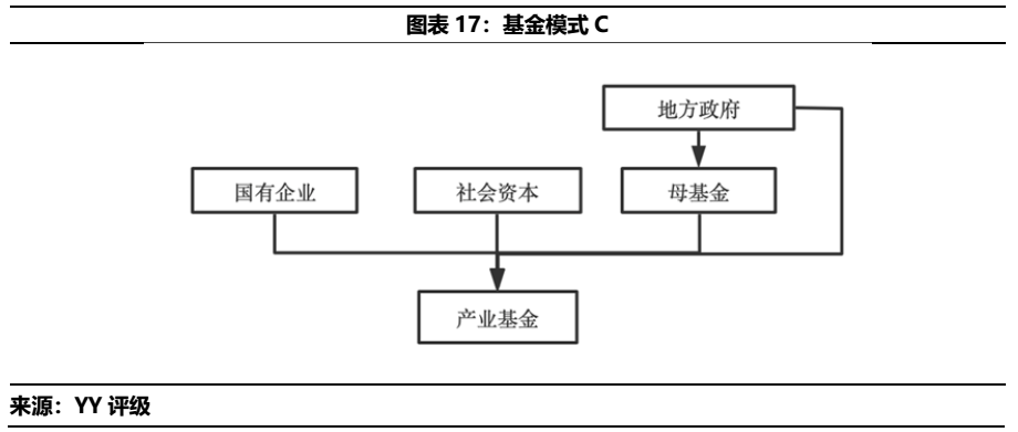 進一步聚焦于產業(yè)基金資金流向,按照基金股東類別將基金分為三類,即類別A(國有企業(yè)+地方政府),類別B(國有企業(yè)+社會資本)和類別C(國有企業(yè)+地方政府+社會資本),根據政府參與程度來看,類別A市場化程度最低,而類型B市場化程度最高。