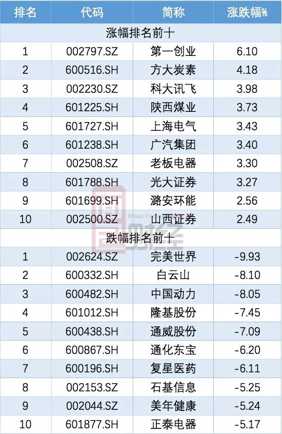 根據行情數據,在226只成分股中,有73只個股上漲,143只個股下跌,下跌個股約占到成分股總數的63.27%。其中,第一創業以6.1%漲幅居首,完美世界以9.93%跌幅收尾。以下為漲幅排名前十及跌幅排名前十的個股: