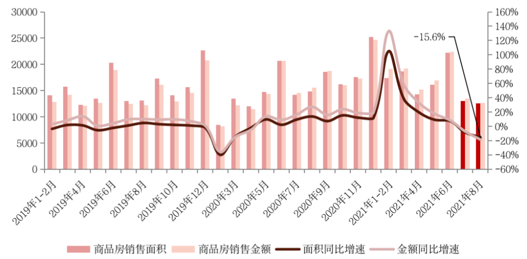 數據顯示,1-8月全國房地產開發投資98060億元,同比增長10.9%,保持基本穩定;新房銷售短期內面臨較大下行壓力,8月單月商品房銷售面積同比下降近16%,東部地區銷售增速出現回落。與此同時,施工和拿地雙雙再度降溫,其中新開工同比降17%至2019年以來月度最低。
