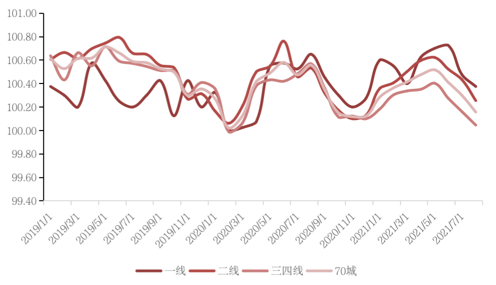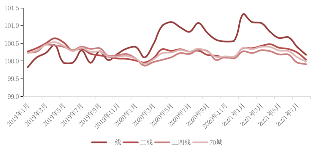 從全國70個大中城市商品住宅銷售價格來看,8月份,一、二、三線城市新建商品住宅銷售價格環比上漲0.3%、0.2%和持平,漲幅比上月分別回落0.1、0.2個百分點。一、二、三線城市二手住宅銷售價格分別環比上漲0.2%、環比上漲0.2%、環比下降0.1%,其中,一線城市中深圳環比下降0.4%,連續4個月下降;三線城市二手房價格連續兩個月下降。