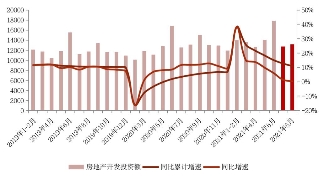 8月單月完成開發投資額13165億元,環比增3.5%;同比僅微增0.3%,漲幅較7月收窄1.1個百分點,9月大概率將由增轉跌進入負增長區間。