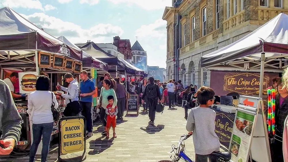 位于大倫敦西南部的金斯頓區,于1989年開始推行商業步行化改造,一度成為英國最大的零售中心之一,每年接待1800萬游客。