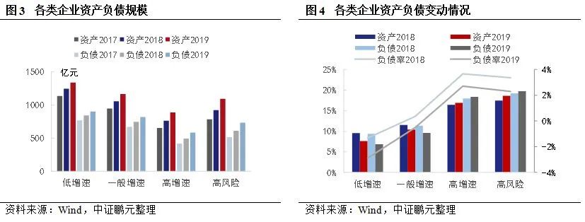 從發行人資產負債規模看,高增速企業的資產負債規模相對較小,但從資產負債的變動情況看,高增速企業的資產負債規模增速相對較高,資產負債率增長明顯。