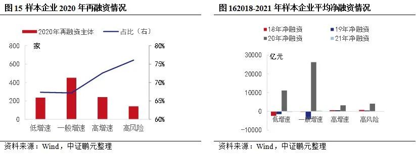 風險企業的風險化解:第一,伴隨著“化存量”和“防新增”相關政策的出臺,弱資企業再融資環境面臨持續緊張,風險加速暴露。第二,弱資企業債務風險需要理性對待,結合“化存量”,降低風險積聚,而非一味限制再融資。
