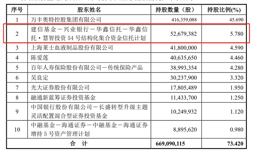 建信基金在參與定增后一躍成為萬豐奧威的第二大股東,持股總數占到總股本的5.78%。