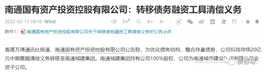 今天看到南通國有資產(chǎn)投資控股有限公司(以下簡稱“南通國資”)關(guān)于轉(zhuǎn)移債務(wù)融資工具清償義務(wù)的公告,大致情況是計劃由發(fā)行人母公司,南通城市建設(shè)集團有限公司,承繼發(fā)行人發(fā)行的相關(guān)中票的償付義務(wù)。筆者不禁聯(lián)想到城投債務(wù)的控制問題。