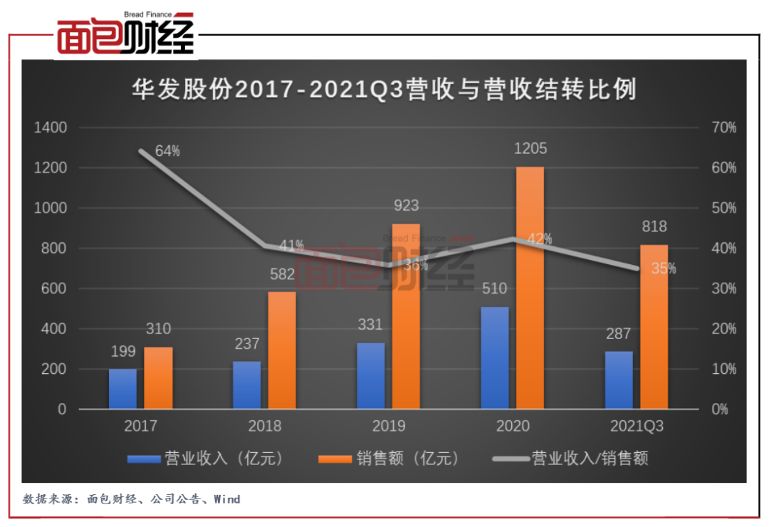 圖2:華發(fā)股份2017-2021Q3營(yíng)收與營(yíng)收結(jié)轉(zhuǎn)比例