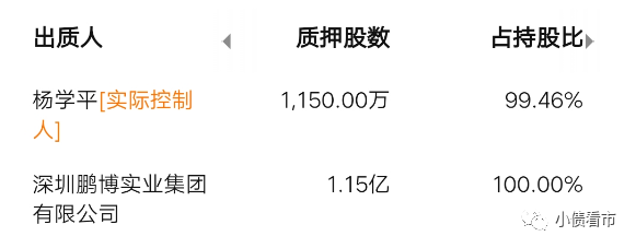 截至2020年7月,鵬博士的實控人楊學平所持公司股權的質押率為99.46%;控股股東鵬博實業質押率為100%,可以看出股票質押率非常高,不僅存在爆倉風險,還存在實控人變更風險。