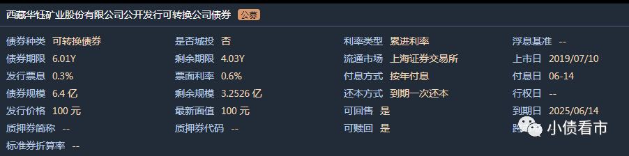 《小債看市》統(tǒng)計,目前華鈺礦業(yè)存續(xù)一只“華鈺轉(zhuǎn)債”,該券發(fā)行于2019年7月,當前余額3.25億元,轉(zhuǎn)股價10.17元。