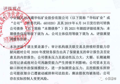 近日,中證鵬元公告稱,將華鈺礦業(yè)(601020.SH)主體信用等級由AA-下調(diào)至A,“華鈺轉(zhuǎn)債”信用等級由AA-下調(diào)至A,評級展望由“穩(wěn)定”調(diào)整為“負面”。