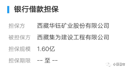 截至2020年末,華鈺礦業(yè)為西藏集為建設(shè)工程有限公司貸款事項向擔保公司拉薩市信用融資擔保有限責任公司提供反擔保,擔保余額1.6億元,占期末凈資產(chǎn)的6.36%。
