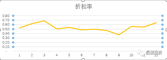 全年各月份整體成交折扣率波動(dòng)幅度不大,9月份后折扣率有一定的上行趨勢(shì)。