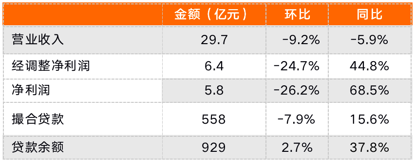 財(cái)報(bào)顯示,業(yè)務(wù)結(jié)構(gòu)調(diào)整及“降速保質(zhì)”策略下,樂信三季度業(yè)績有所下滑,三季度實(shí)現(xiàn)營業(yè)收入29.7億元,同比減少5.9%,環(huán)比減少9.2%;實(shí)現(xiàn)凈利潤5.8億元,由于低基數(shù)同比增長68.5%,但環(huán)比減少26.2%;樂信的輕資本模式轉(zhuǎn)型在繼續(xù),不承擔(dān)信用風(fēng)險(xiǎn)的平臺(tái)業(yè)務(wù)實(shí)現(xiàn)收入7.8億元,占營收的比重環(huán)比增加7.2個(gè)百分點(diǎn)至26.1%;此外,三季度末的90天+逾期率1.85%,環(huán)比持平,三季度繼續(xù)發(fā)力小微貸,促成貸款52億元,占季度新增貸款的比重增至9.3%。