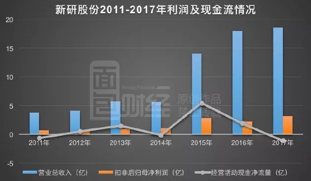 2018年4月24日,新研股份發(fā)布2018年一季報,公司賬面的商譽金額高達28.86億元,占到公司歸母凈資產(chǎn)的46.13%。而產(chǎn)生商譽的主要并購公司在2015-2017年承諾期,業(yè)績完成率100.15%,壓線達標。