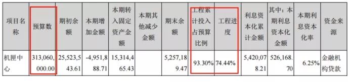2016年機匣中心的完工進度已經(jīng)達到92.74%,而一年之后的2017年,其完工進度卻變?yōu)榱?4.44%。同時,該項目預算數(shù)也發(fā)生了變化。在2017年以前的財報中,機匣中心預算金額均為3.03億元,甚至在2017年半年報中,項目預算也還是3.03億元,完工進度也已達到93.24%。而到了2017年年報中,項目預算突然變?yōu)榱?.13億元,同時完工進度倒退近20%。