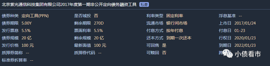 《小債看市》統計,目前紫光通信僅存續一只“17紫光通信PPN001”,當前余額20億元,將于2022年1月23日到期。