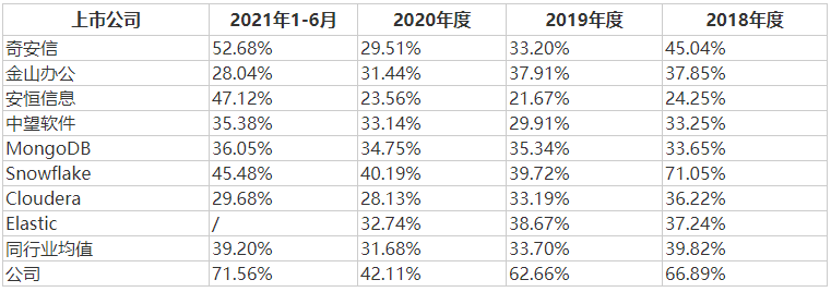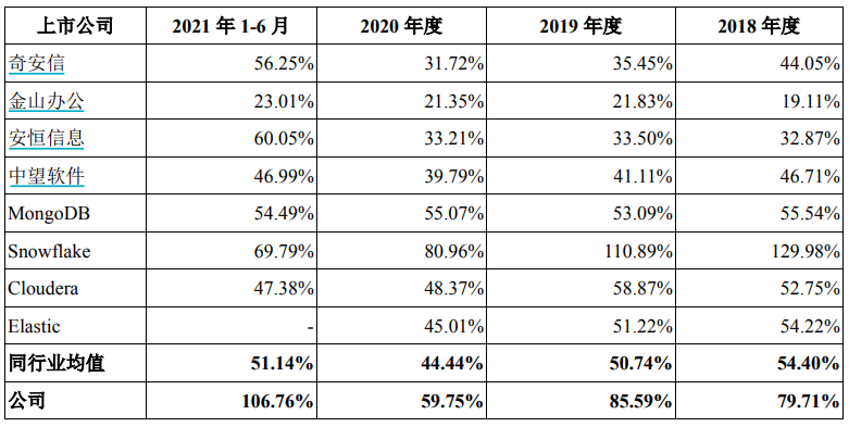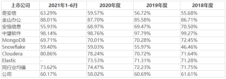 根據招股書,星環科技的毛利率水平低于同行業可比上市公司平均水平,但保持相對穩定,在報告期基本保持在60%上下,變動不大。