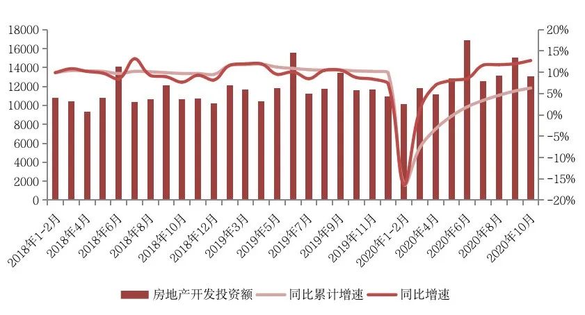 開發投資方面,2020年1-10月份,全國房地產開發投資116556億元,同比增長6.3%,增速比1-9月份提高0.7個百分點。