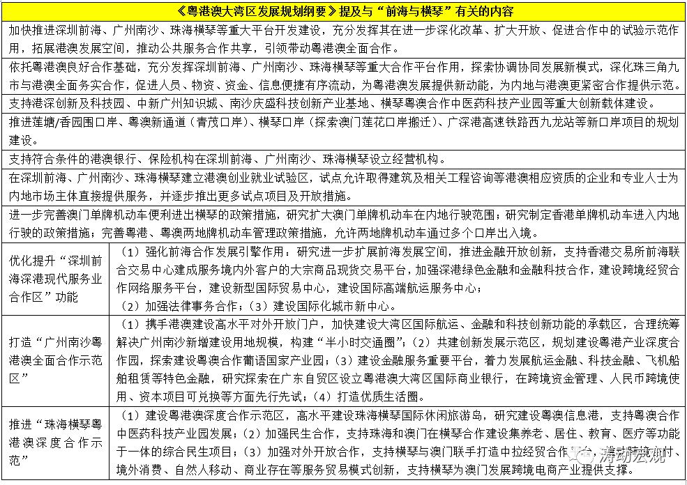 三、《粵港澳大灣區(qū)發(fā)展規(guī)劃綱要》曾通過專門章節(jié)對(duì)三大合作區(qū)進(jìn)行過討論