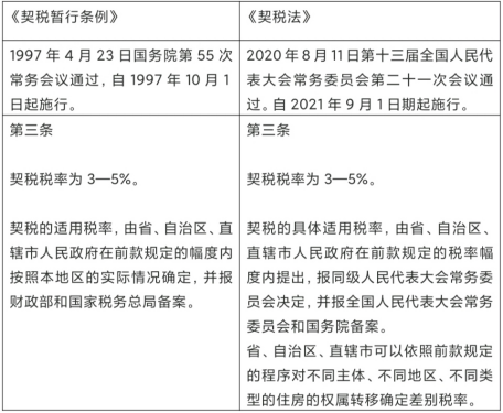 通過對比《契稅暫行條例》與《契稅法》,你會發現,其實我國契稅一直以來適用的稅率都是3—5%。契稅立法后,并沒有調整法定稅率的幅度。