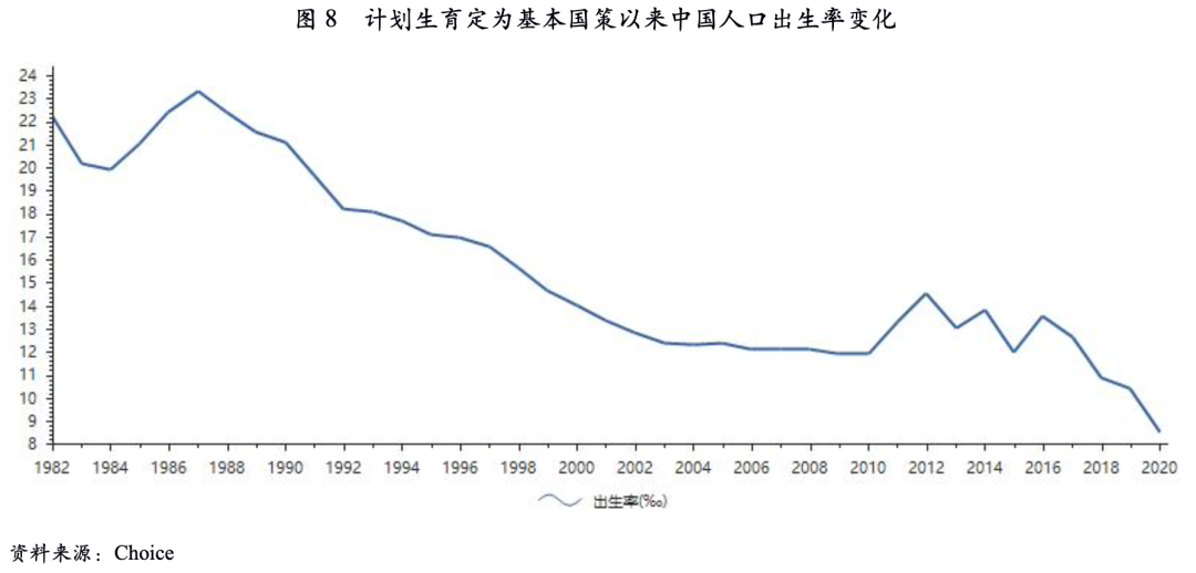 人口是房地產(chǎn)未來市場空間的重要決定因素。20世紀(jì)80年代計(jì)劃生育被定為基本國策以來,中國人口出生率顯著下降,放開二胎對出生率的提振效果較為有限,2020年出生率降至8.52‰的歷史低點(diǎn)。處于下行通道中的出生率逆轉(zhuǎn)的難度較大,人口增長乏力是制約中國房地產(chǎn)中長期發(fā)展的重要原因。