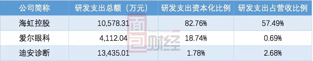 到底有多名列前茅呢?面包財經做了一個大致的統計:在A股上市公司中,披露研發費用的公司共有2800家左右。海虹控股的研發占比,可以排進前10名。