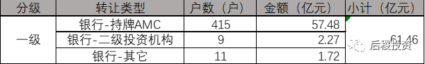 持牌AMC出包金額超過(guò)40億,包括了持牌AMC-持牌AMC、持牌AMC-其它和二級(jí)投資機(jī)構(gòu)等多種轉(zhuǎn)讓模式。
