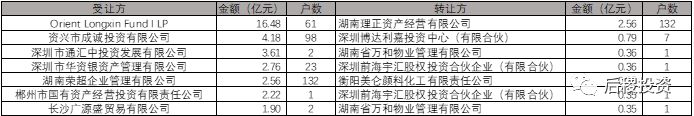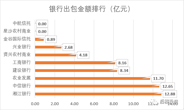 從數(shù)據(jù)來(lái)看,湘江銀行出包最多。星沙農(nóng)村商業(yè)銀行、中航信托轉(zhuǎn)讓公告中未披露成交金額。